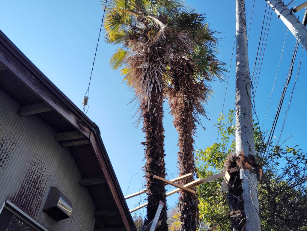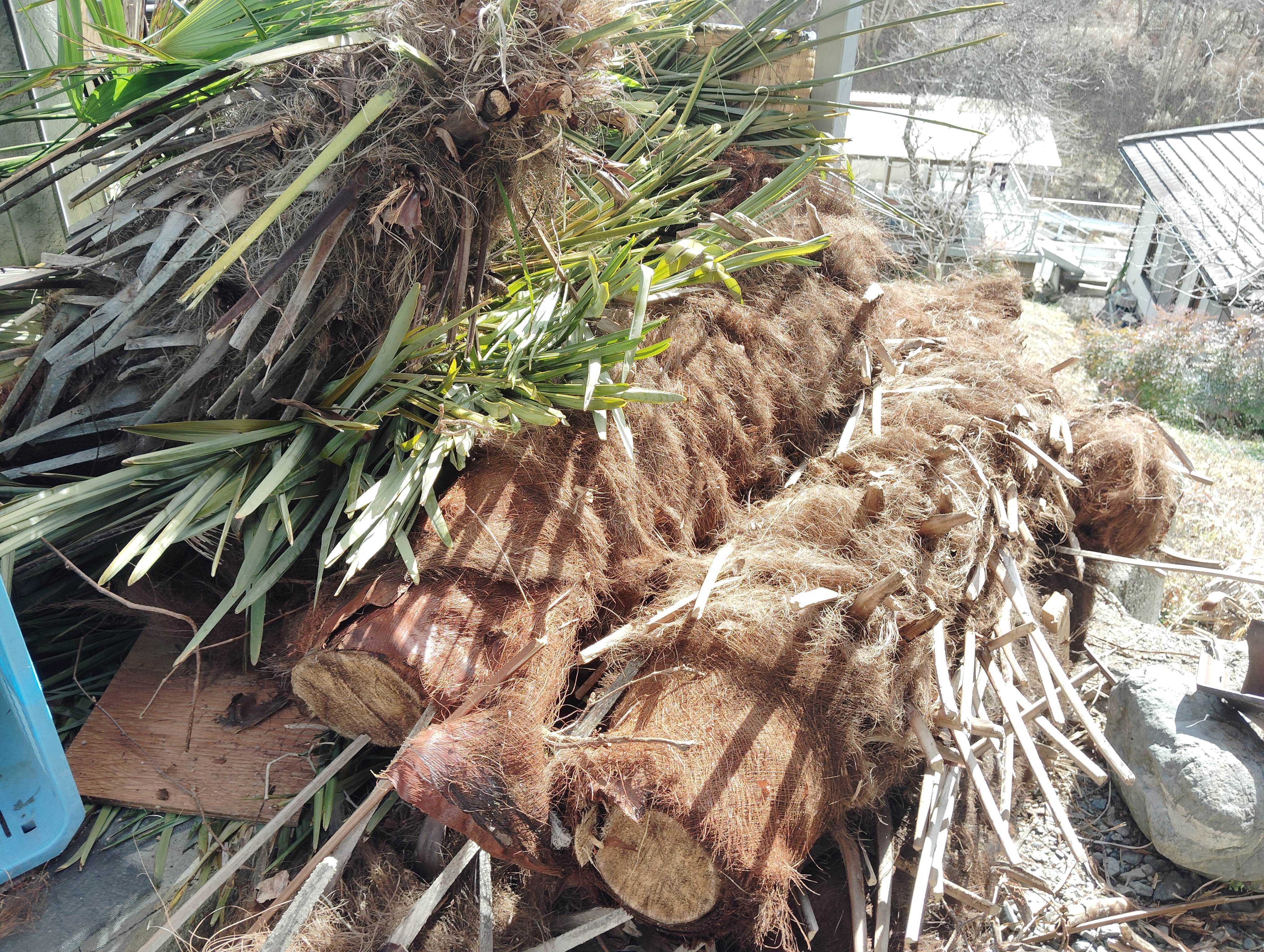 実はうちの庭に、シュロの木(ヤシの木みたいな感じで、上にバナナがなりそうな大きい葉っぱがつく木です)が3本生えていたんです。